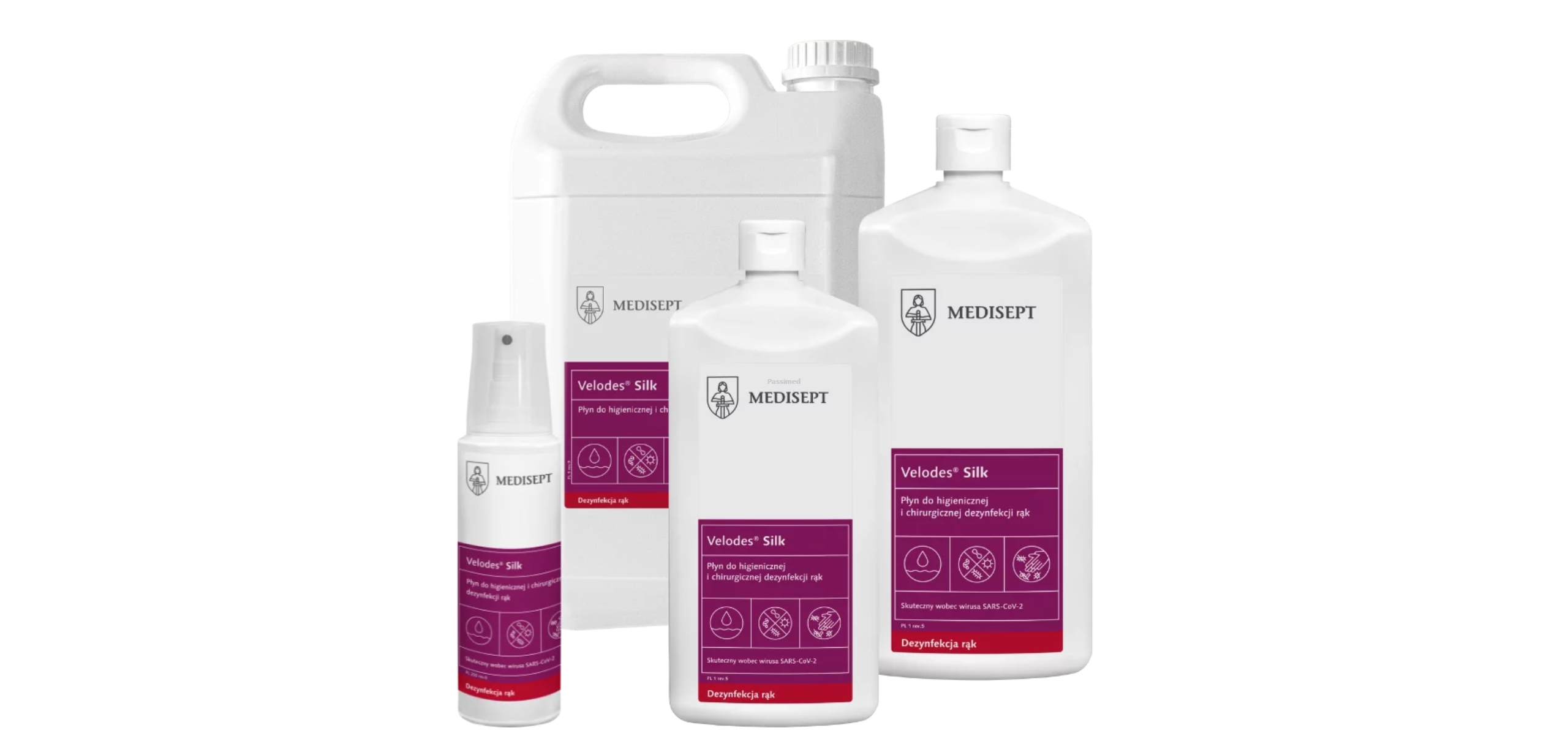 Velodes Silk to alkoholowy, gotowy do użycia płyn do higienicznej i chirurgicznej dezynfekcji rąk, który dodatkowo może być stosowany jako środek do dezynfekcji powierzchni.